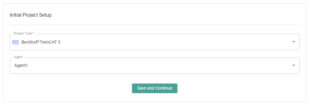 To get started, we will first select the *Project Type* from the list provided, and then select an *Agent*.  If you have not already created an Agent, you can create and assign an Agent at a later time.  See more about this in the [Agents ](https://docs.copia.io/docs/devicelink/sitesandagents/agents)section of the documentation.