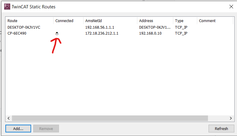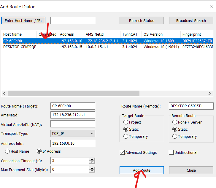 ### Setting up the TwinCAT Route to the Device