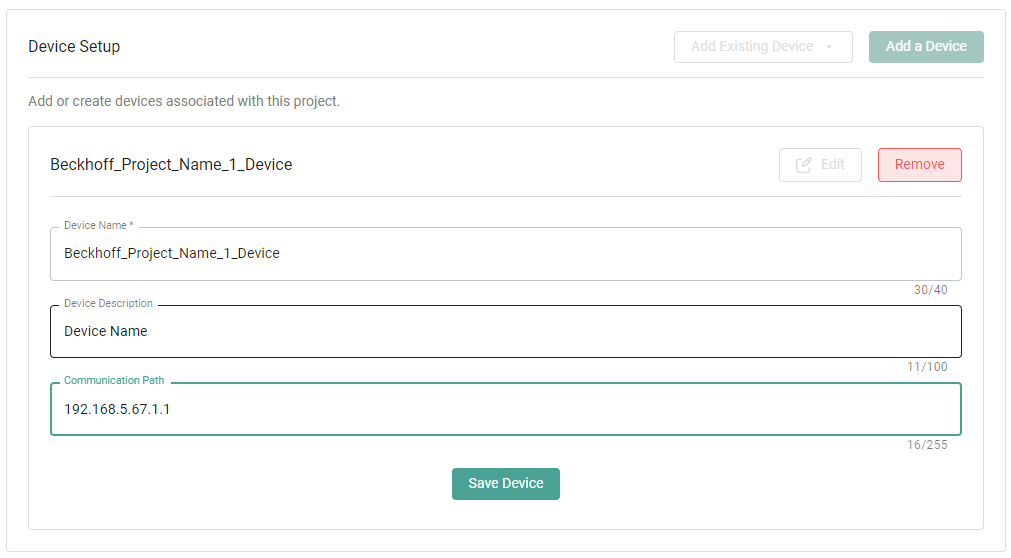 Press *Save Device* when complete.