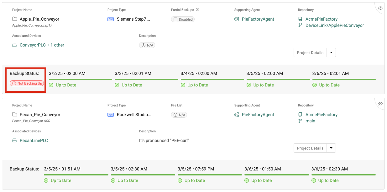 <figure><img src="https://3704730939-files.gitbook.io/~/files/v0/b/gitbook-x-prod.appspot.com/o/spaces%2F4lSQNVI3DZ15V7kjkMCA%2Fuploads%2FHHXk4xYrqhcQZACJgEBr%2FScreenshot%202025-03-06%20at%2011.45.46%E2%80%AFAM.png?alt=media&#x26;token=e1a40e55-f791-484c-87cd-93e7b2b7fdc0" alt=""><figcaption><p>The "Not Backing Up" label is shown on a Project card when a Project is not associated to a scheduled job (including the sitewide backup schedule, if applicable).</p></figcaption></figure>