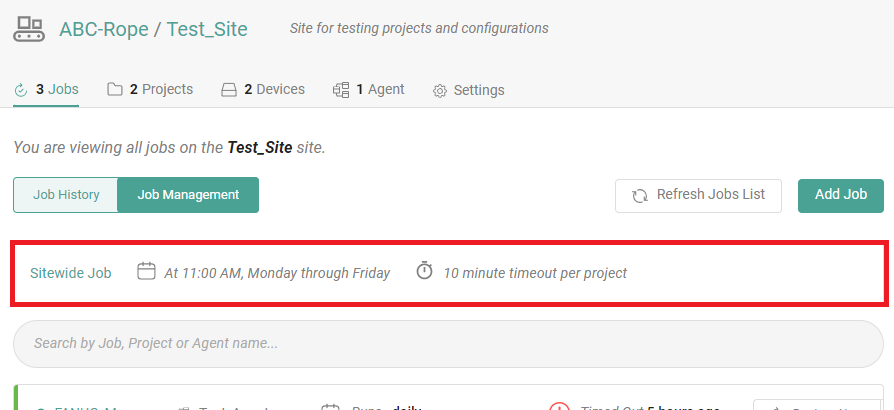 Once configured, the sitewide job will be visible on the Job Management page as shown in the screenshot below.