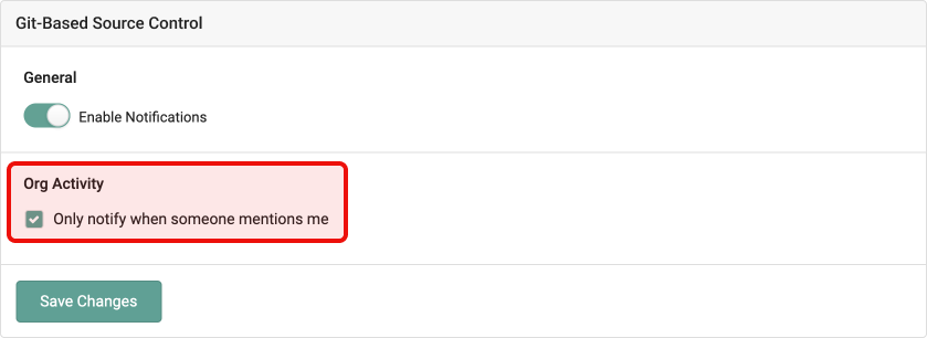 When you enable notifications for Git-Based Source Control, you will receive notifications for general activity in your Organization.